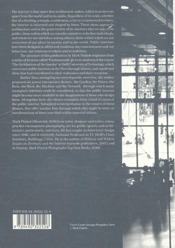 De aanleiding voor deze Engelstalige publicatie The Public Interior as Idea and Project is een lezingenserie die Mark Pimlott gaf aan studenten van de TU Delft, tijdens de opleiding 'The Architecture of the Interior'. Pimlott stelt dat het interieur een publieke zaak is, en interieurarchitectuur een essentiële ontwerpdiscipline. Het publieke domein is volgens de auteur bepalend voor de ervaring van onze gebouwde omgeving. Vooralsnog wordt de definitie van het publieke interieur geïnterpreteerd als de binnenkant van publieke gebouwen. Volgens Pimlott is deze interpretatie te beperkt. Het interieur is een onlosmakelijk onderdeel van onze leefwereld en daarmee per definitie publiek, zelfs wanneer het om een private omgeving gaat. The Public Interior as Idea and Project verkent deze stelling aan de hand van een zestal thema's, geïllustreerd met talrijke voorbeelden: Het Paleis, De tuin, De Ruïne, De schuur, Het Netwerk en De Machine. Deze typologieën zijn essentieel wanneer het om interieurarchitectuur gaat in relatie tot cultuur en gebruik.