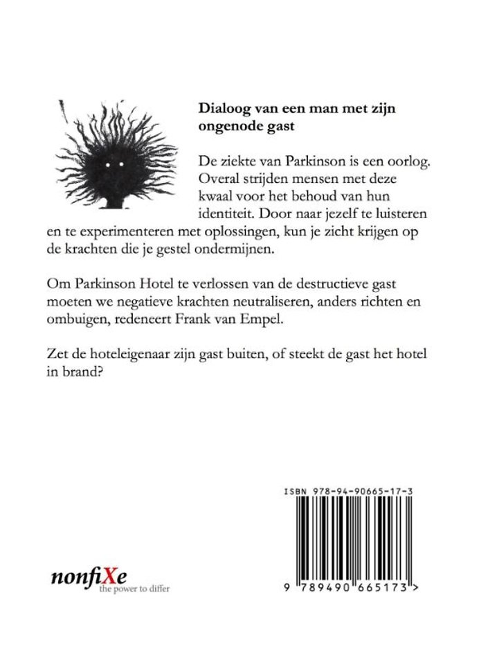 Om Parkinson Hotel te verlossen van de destructieve gast moeten we negatieve krachten neutraliseren, anders richten en ombuigen, redeneert Frank van Empel. Hij voert hiertoe een felle dialoog met zijn ongenode gast: Parkie.