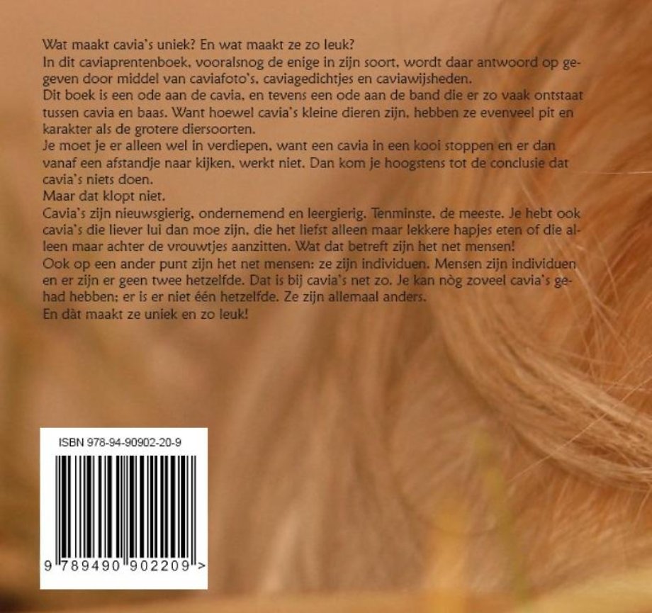 Dit boek is een ode aan de cavia, en tevens een ode aan de band die er zo vaak ontstaat tussen cavia en baas. Want hoewel cavia s kleine dieren zijn, hebben ze evenveel pit en karakter als de grotere diersoorten.