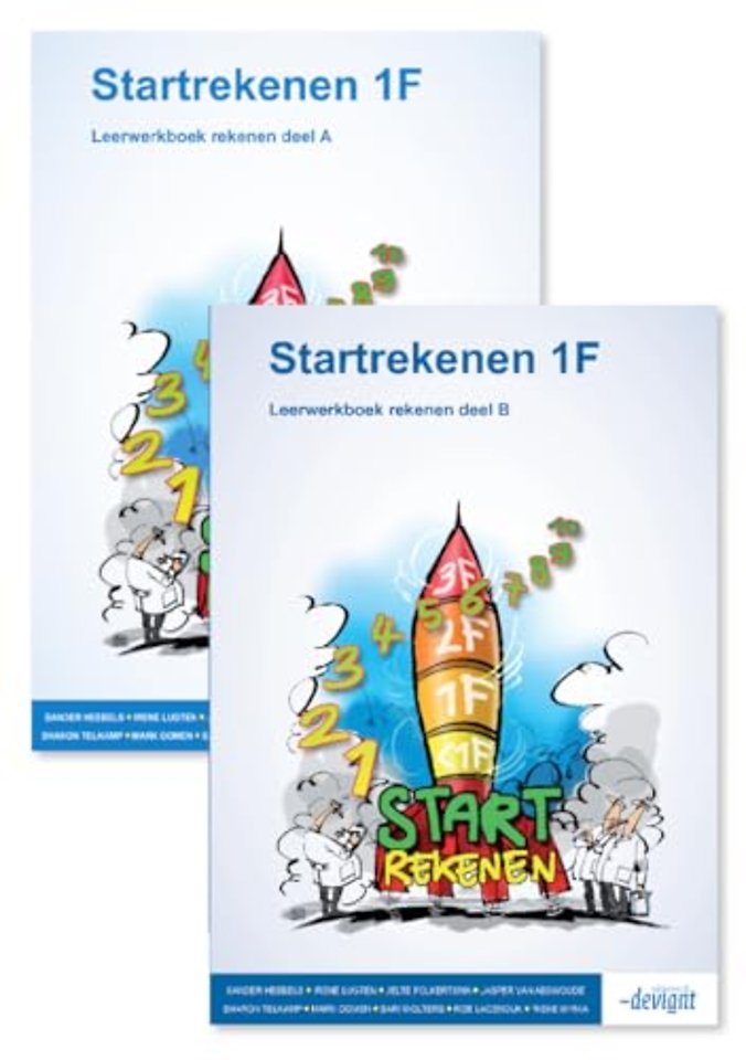 STARTREKENEN 1FStartrekenen is de methode rekenvaardigheid van Uitgeverij Deviant. Startrekenen is ontwikkeld conform de referentieniveaus 1F, 2F en 3F van de Commissie Meijerink. De Commissie Meijerink heeft in het rapport 'Doorlopende leerlijnen taal en rekenen' per referentieniveau geformuleerd aan welke rekeneisen een leerling moet voldoen ten aanzien van de vier domeinen:- getallen;- verhoudingen;- meten & meetkunde;- verbanden.Uitgeverij Deviant biedt drie elkaar aanvullende producten om het beleid voor rekenvaardigheid inhoud te geven:1. Rekenniveautest (RNT): adaptieve online niveautest om het rekenniveau van de leerling vast te stellen;2. Startrekenen Leerwerkboeken: leerwerkboeken rekenvaardigheid op 'Op weg naar 1F', 1F- 2F- en 3F-niveau;3. Startrekenen Online: oefen- en toetsprogramma rekenvaardigheid op 'Op weg naar 1F', 1F-, 2F- en 3F-niveau.DOELGROEP STARTREKENEN 1FStartrekenen 1F is ontwikkeld voor leerlingen in de bovenbouw van het praktijkonderwijs (PrO), in deonderbouw van het vmbo, in VM2-trajecten en in Entree-opleidingen (AKA-trajecten en niveau 1). Startrekenen 1F is ook geschikt voor leerlingen in het vo en mbo op andere niveaus die een rekenachterstand hebben opgelopen. LEERWERKBOEKHet leerwerkboek Startrekenen 1F behandelt de domeinen Getallen, Verhoudingen, Meten & meetkunde en Verbanden op referentieniveau 1F. Het leerwerkboek Startrekenen 1F valt uiteen in een A-deel en een B-deel. In het A-deel worden de domeinen Getallen en Verhoudingen behandeld. In het B-deel worden de domeinen Meten & meetkunde en Verbanden behandeld.Elk domein valt op met een eigen kleur, zodat de leerling makkelijk door het boek kan navigeren. Zowel de theorie als de opdrachten zijn kort en krachtig geformuleerd, zodat de leerling niet wordt afgerekend op taal in een rekenmethode. Elk van de twee delen heeft een studiebelasting van circa één leerjaar.HOOFDSTUKOPBOUWDe vier domeinen in Startrekenen 1F zijn elk in hoofdstukken onderverdeeld. Elk hoofdstuk is op dezelfde wijze opgebouwd:- startopdracht: in deze opdracht probeert de leerling aan het begin van een hoofdstuk een contextopgave op eigen wijze op te lossen.- theorie, voorbeelden en opdrachten per onderwerp: de leerling krijgt theorie en praktische voorbeelden aangeboden in behapbare brokken. Vervolgens past de leerling de theorie toe in de bijbehorende opdrachten.- eindopdracht: de aangeboden theorie van een hoofdstuk komen samen in een eindopdracht. Tijdens deze eindopdracht volgt de leerling een stapsgewijze aanpak om een relatief ingewikkeld rekenprobleem op te lossen. De eindopdracht bereidt de leerling voor op de hoofdstuktoets.EINDPROJECTElk domein wordt afgesloten met een eindproject waarin alle aangeboden stof uit het domein geïntegreerd aan bod komt. Het eindproject bestaat uit een doorlopende contextopgave met daarop aansluitende bronnen en afbeeldingen. Het eindproject die als extra voorbereiding op de afsluitende domeintoets op 1F-niveau.GRATIS TOETSEN EN AANVULLEN MATERIAALUitgeverij Deviant biedt de gebruikers van Startrekenen 1F per hoofdstuk en per domein papieren toetsen en daarbij behorende correctiemodellen. Daarnaast biedt Uitgeverij Deviant methode-onafhankelijke kwalificerende toetsen op 1F-niveau. Tot slot biedt Uitgeverij Deviant ook docentenhandleidingen, aftekenkaarten en portfoliobladen een de gebruikers van de methode aan.Voor alle toetsen en aanvullende materialen geldt dat deze kosteloos te downloaden zijn van de methodesite Studiemeter.nl.Extra online oefenenIn Startrekenen Online kunnen leerlingen extra oefenen met opdrachten en onderwerpen op 1F-niveau die zij lastig vinden. Leerlingen kunnen ook extra oefenen met opdrachten en onderwerpen op een hoger niveau. De extra oefeningen worden in overleg met de docent gemaakt. Voor het online oefenen heeft een leerling namelijk een aparte inlogcode nodig. Titel: Startrekenen OnlineISBN: 978-94-90013-158