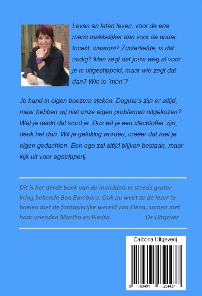 Dit is het derde boek van de inmiddels in steeds groter kring bekende Bea Bambara. Ook nu weet ze de lezer te boeien met de fantasierijke wereld van Elena, samen met haar vrienden Martha en Piedro. De Uitgever