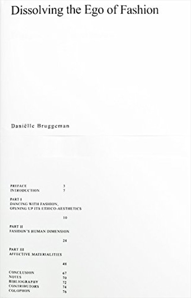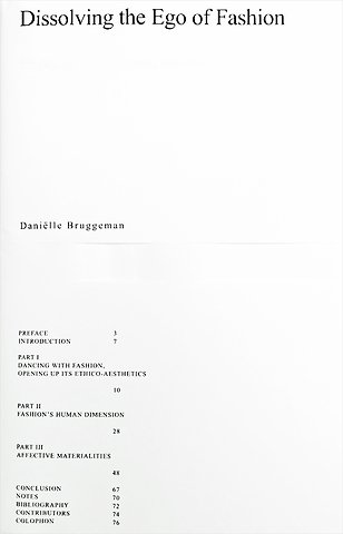 'Dissolving the Ego of Fashion' presents an in-depth introduction to the vision and research themes that the Fashion Professorship of ArtEZ University of the Arts sets out to explore in the coming years. Daniëlle Bruggeman aims to develop critical theories and practices in order to explore, better understand, and rethink the cracks in the fashion system and the role that fashion plays – and could potentially play – in relation to urgent socio-cultural, environmental, and political developments in contemporary society.