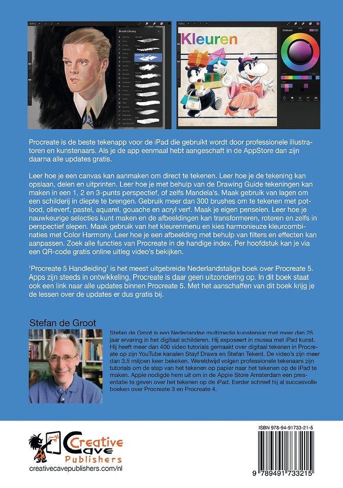 Stefan de Groot is een Nederlandse multimedia kunstenaar met meer dan 25 jaar ervaring in het digitaal schilderen. Hij exposeert in musea met iPad kunst. Hij heeft meer dan 400 video tutorials gemaakt over digitaal tekenen in Procreate op zijn YouTube kanalen Stayf Draws en Stefan Tekent. De video’s zijn meer dan 3,5 miljoen keer bekeken. Wereldwijd volgen professionele tekenaars zijn tutorials om de stap van het tekenen op papier naar het tekenen op de iPad te maken. Apple nodigde hem uit om in de Apple Store Amsterdam een presentatie te geven over het tekenen op de iPad. Eerder schreef hij al succesvolle boeken over Procreate 3 en Procreate 4.