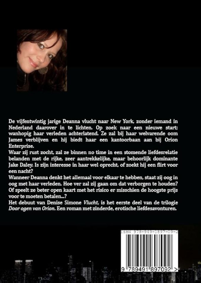 Het debuut van Denise Simone Vecht, vlucht verlangen, is het eerste deel van de trilogie Door ogen van Orion. Een roman met zinderde, erotische liefdesavonturen.