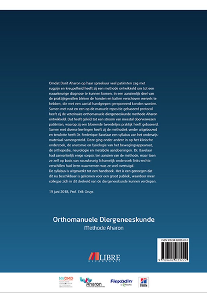 Omdat Dorit Aharon op haar spreekuur veel patiënten zag met rugpijn en kreupelheid heeft zij een methode ontwikkeld om tot een nauwkeurige diagnose te kunnen komen. In een aanzienlijk deel van de praktijkgevallen bleken de honden en katten verschoven wervels te hebben, die met een aantal handgrepen gereponeerd konden worden. Samen met rust en een op de manuele repositie gebaseerd protocol heeft zij de veterinaire orthomanuele diergeneeskunde methode Aharon ontwikkeld. Dat heeft geleid tot een stroom van meestal doorverwezen patiënten, waarop zij een bloeiende tweedelijns praktijk heeft gebaseerd. Samen met diverse leerlingen heeft zij de methodiek verder uitgebouwd en tenslotte heeft Dr. Frederique Bavelaar een syllabus van het onderwijs- materiaal samengesteld. Deze ging onder andere in op het klinische onderzoek, de anatomie en fysiologie van het bewegingsapparaat, de orthopedie, neurologie en metabole aandoeningen. Dr. Bavelaar had aanvankelijk enige scepsis ten aanzien van de methode, maar toen ze zelf op basis van nauwkeurig lichamelijk onderzoek links-rechts-verschillen had leren waarnemen was ze snel overtuigd.