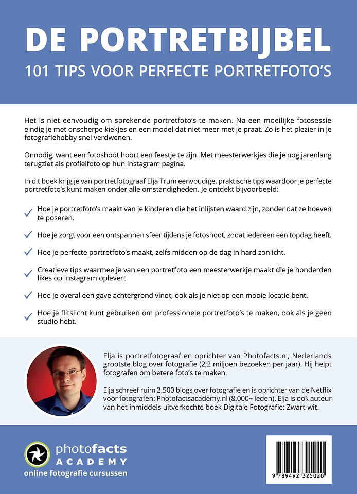In dit boek krijg je van portretfotograaf Elja Trum eenvoudige, praktische tips waardoor je perfecte portretfoto’s kunt maken onder alle omstandigheden. Je ontdekt bijvoorbeeld: