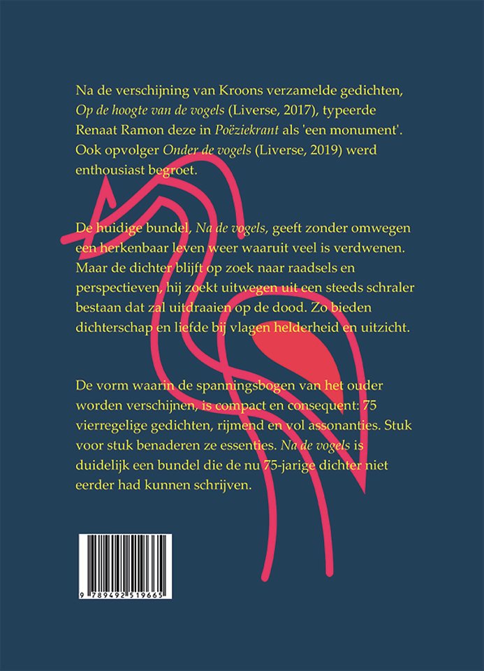 De vorm waarin de spanningsbogen van het ouder worden verschijnen, is compact en consequent: 75 vierregelige gedichten, rijmend en vol assonanties. Stuk voor stuk benaderen ze essenties. Na de vogels is duidelijk een bundel die de nu 75-jarige dichter niet eerder had kunnen schrijven.