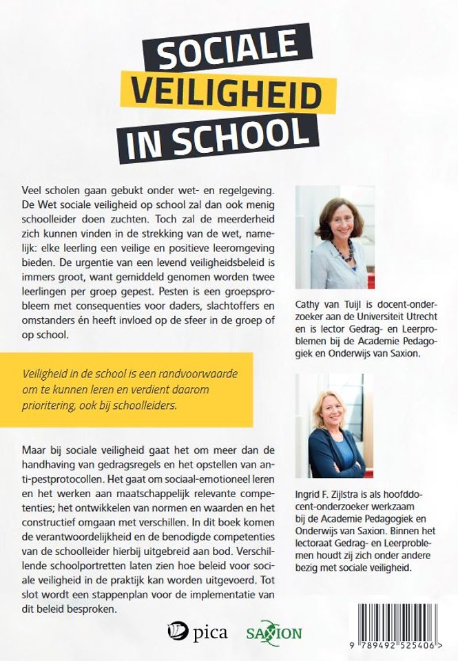 In dit boek wordt stilgestaan bij sociaal-emotioneel leren als basis voor sociale veiligheid. Daarnaast wordt aandacht besteed aan een relatief nieuw verschijnsel: cyberpesten. Een drietal schoolportretten laat zien hoe ver scholen kunnen zijn in de uitvoering van sociale veiligheid. Tot slot wordt een stappenplan voor implementatie van sociale veiligheid besproken en een overzicht geboden van voorlopig goedgekeurde programma's.