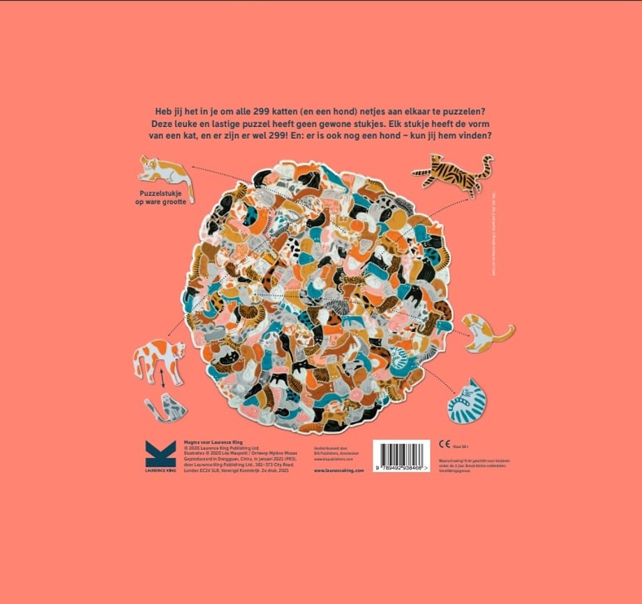 Kun jij alle 299 katten in één perfecte puzzel samenbrengen? Deze slimme clusterpuzzel heeft geen reguliere puzzelstukjesvormen: elk stukje heeft de contouren van een kat, en er zijn maar liefst 300 stukjes! En o ja, ook nog een hond. Kijk maar eens of je die kunt vinden!