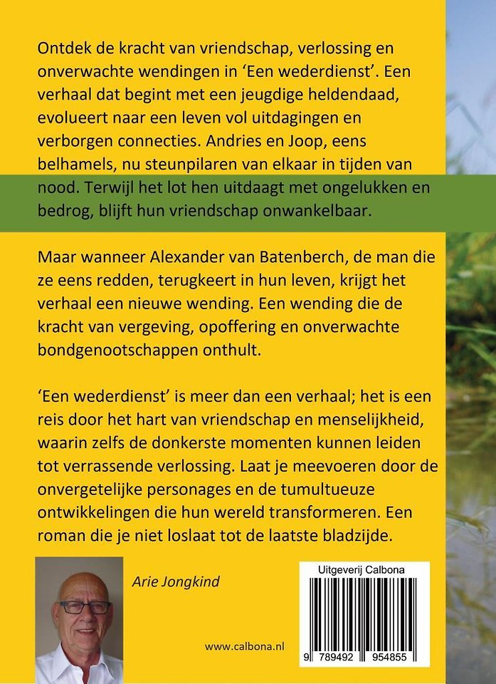 Ontdek de kracht van vriendschap, verlossing en onverwachte wendingen in ‘Een wederdienst’. Een verhaal dat begint met een jeugdige heldendaad, evolueert naar een leven vol uitdagingen en verborgen connecties. Andries en Joop, eens belhamels, nu steunpilaren van elkaar in tijden van nood. Terwijl het lot hen uitdaagt met ongelukken en bedrog, blijft hun vriendschap onwankelbaar. Maar wanneer Alexander van Batenberch, de man die ze eens