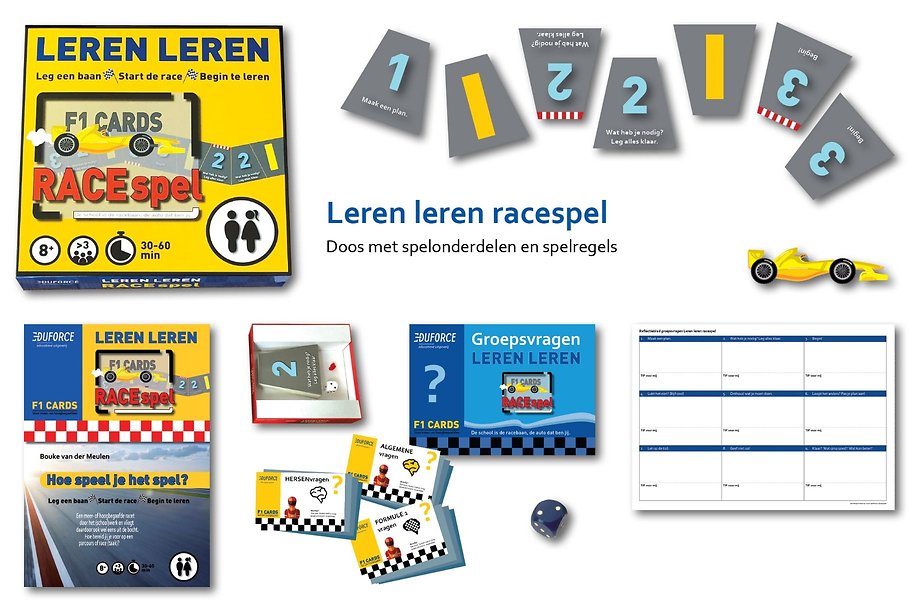 Slimme kinderen racen door het (school)werk en vliegen daardoor nogal eens uit de bocht. Deze racers hebben vaardigheden nodig om op koers te blijven. Via kennis- en inzichtvragen worden tijdens het spel zoveel mogelijk punten verzameld. Na afloop kunnen leerlingen de executieve functies toepassen bij het verwerken van opdrachten. Door dit spel te spelen zullen leerlingen bewustwording krijgen van executieve functies en leren nadenken over hun eigen handelen, leren-leren dus. Probeer tijdens de les zoveel mogelijk punten als groep/klas te verzamelen. Let op! De groep krijgt 50 bonuspunten bij de finish als alle 9 groepsvragen (executieve functies) zijn behandeld op het reflectieblad. Je kunt het spel meerdere keren per jaar spelen. Varieer in A, B, C en D-vragen. Bijvoorbeeld, de eerste keer behandel je alleen de A-vragen van de groepsvragen. Er zijn genoeg mogelijkheden om het spel naar eigen inzicht te variëren. Het spel is gemaakt voor meer- en hoogbegaafde kinderen. Het is zeer geschikt om te spelen in de plusklas, maar ook in de reguliere groep. Voor leerlingen van groep 5 - 8, voor de (plus)klas, voor reguliere en hoogbegaafde kinderen.