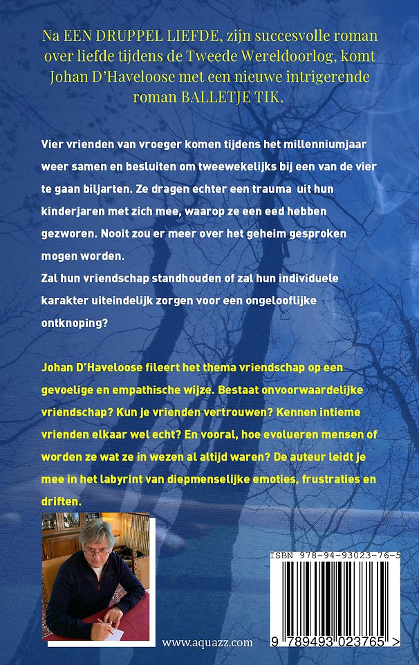 Na EEN DRUPPEL LIEFDE, zijn succesvolle roman over liefde tijdens de Tweede Wereldoorlog, komt Johan D’Haveloose met een nieuwe intrigerende roman BALLETJE TIK.
