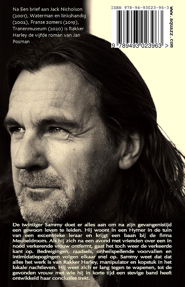Na Een brief aan Jack Nicholson (2001), Waterman en linkshandig (2002), Franse zomers (2019), Tranenmuseum (2020) is Rakker Harley de vijfde roman van Jan Posman