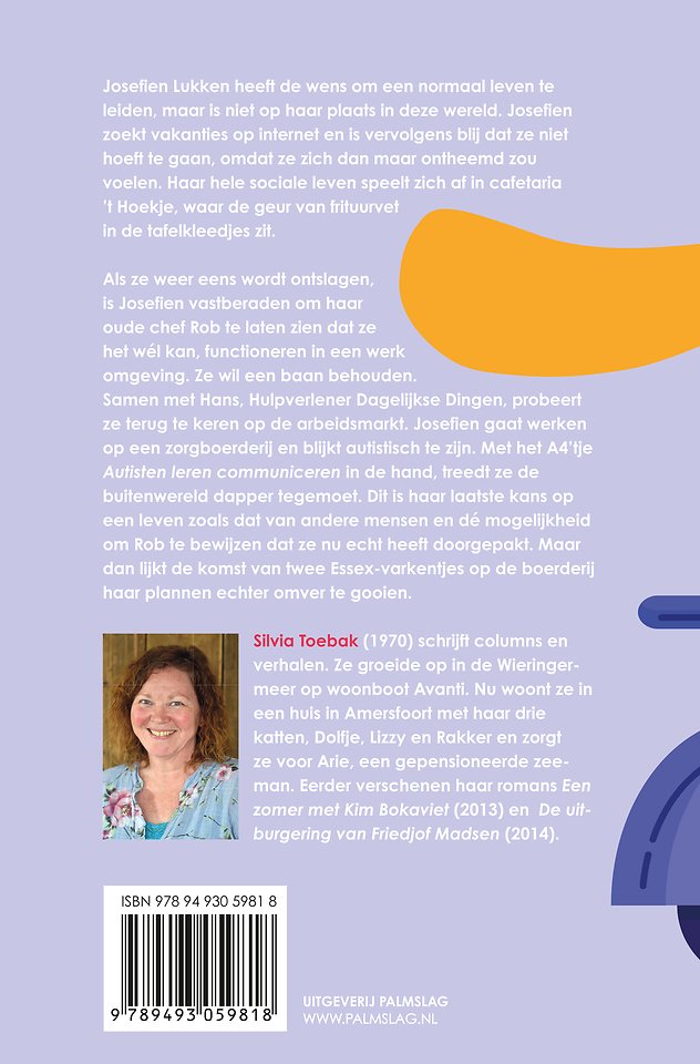 Josefien Lukken heeft de wens om een normaal leven te leiden, maar is niet op haar plaats in deze wereld. Josefien zoekt vakanties op internet en is vervolgens blij dat ze niet hoeft te gaan, omdat ze zich dan maar ontheemd zou voelen. Haar hele sociale leven speelt zich af in cafetaria ’t Hoekje, waar de geur van frituurvet in de tafelkleedjes zit.