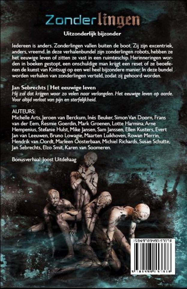 Iedereen is anders. Zonderlingen vallen buiten de boot. Zij zijn excentriek, anders, vreemd. In deze verhalenbundel zijn zonderlingen robots, hebben ze het eeuwige leven of zitten ze vast in een ruimteschip. Herinneringen worden in boeken gestopt, een onschuldige man krijgt een reset of ze beoefenen de kunst van Kintsugi op een wel heel bijzondere manier. In deze bundel worden verhalen van zonderlingen verteld, zodat zij gehoord worden.
