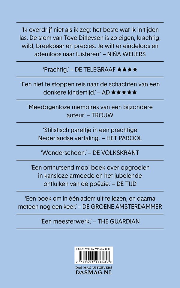 Na Kindertijd volgt Jeugd, het tweede deel uit de Kopenhagen-trilogie van Tove Ditlevsen. Afhankelijkheid, het slotstuk, is een nietsontziend portret van een verslaving – en de weg daaruit.