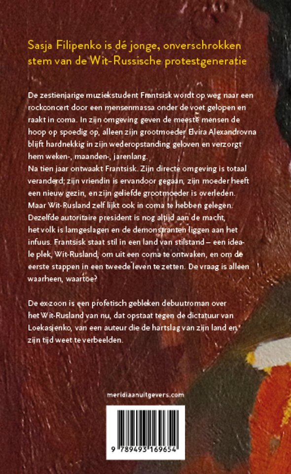 De vraag is alleen waarheen, en waartoe? De ex-zoon is een profetisch gebleken debuutroman over het Wit Rusland van nu, dat opstaat tegen de dictatuur van Loekasjenko, van een auteur die de hartslag van zijn land en zijn tijd weet te verbeelden.