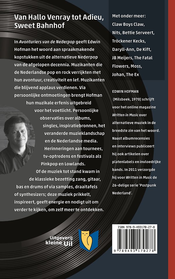 In Avonturiers van de Nederpop geeft Edwin Hofman het woord aan spraakmakende kopstukken uit de alternatieve Nederpop van de afgelopen decennia. Muzikanten die de Nederlandse pop en rock verrijkten met hun avontuur, creativiteit en lef. Muzikanten die blijvend applaus verdienen. Via persoonlijke ontmoetingen brengt Hofman hun muzikale erfenis uitgebreid voor het voetlicht. Persoonlijke observaties over albums, singles, inspiratiebronnen, het veranderde muzieklandschap en de Nederlandse media. Herinneringen aan tournees, tv-optredens en festivals als Pinkpop en Lowlands.