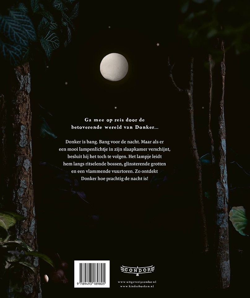 Donker is bang. Bang voor de nacht. Maar als er een mooi lampenlichtje in zijn slaapkamer verschijnt, besluit hij het tóch te volgen. Het lampje leidt hem langs ritselende bossen, glinsterende grotten en een vlammende vuurtoren. Zo ontdekt Donker hoe prachtig de nacht is!