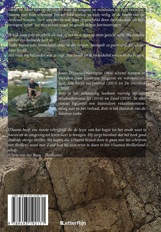 Rots is het zelfstandig leesbare vervolg op zijn misdaadromans IJs (2016) en Zand (2020). In elke roman figureert een bijzondere vakantiebestemming mee in het verhaal. Rots is het sluitstuk van de duistere reeks.