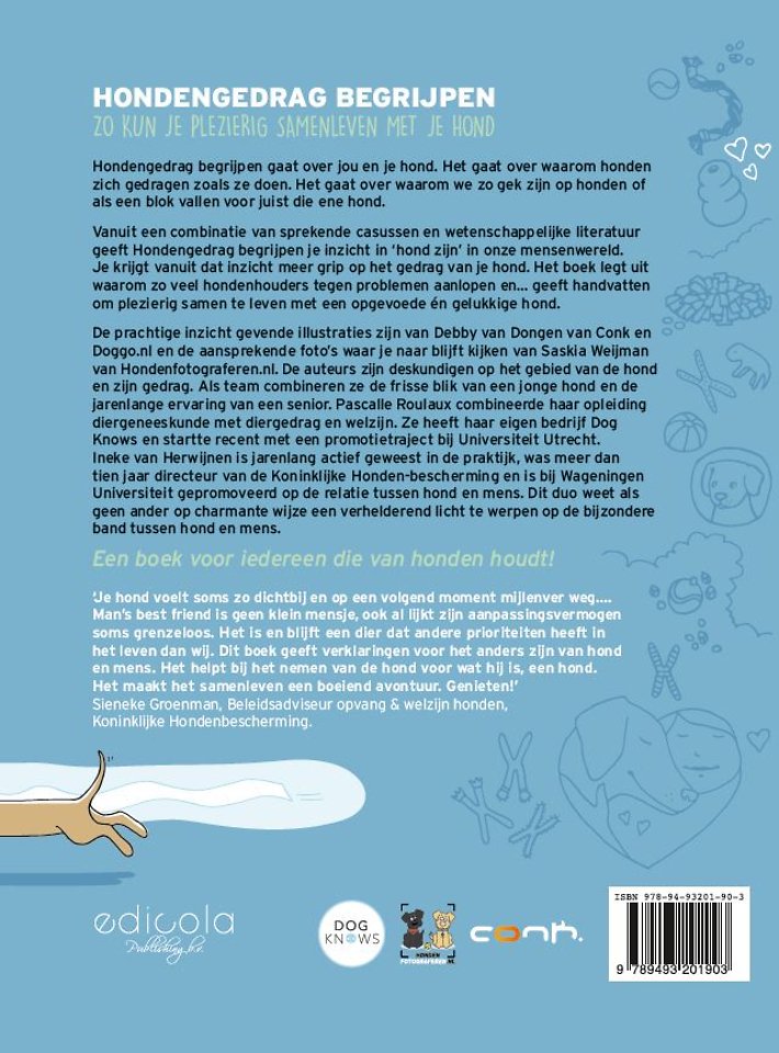 Vanuit een combinatie van sprekende casussen en wetenschappelijke literatuur geeft Hondengedrag begrijpen je inzicht in ‘hond zijn’ in onze mensenwereld. Je krijgt vanuit dat inzicht meer grip op het gedrag van je hond. Het boek legt uit waarom zo veel hondenhouders tegen problemen aanlopen en… geeft handvatten om plezierig samen te leven met een opgevoede én gelukkige hond.