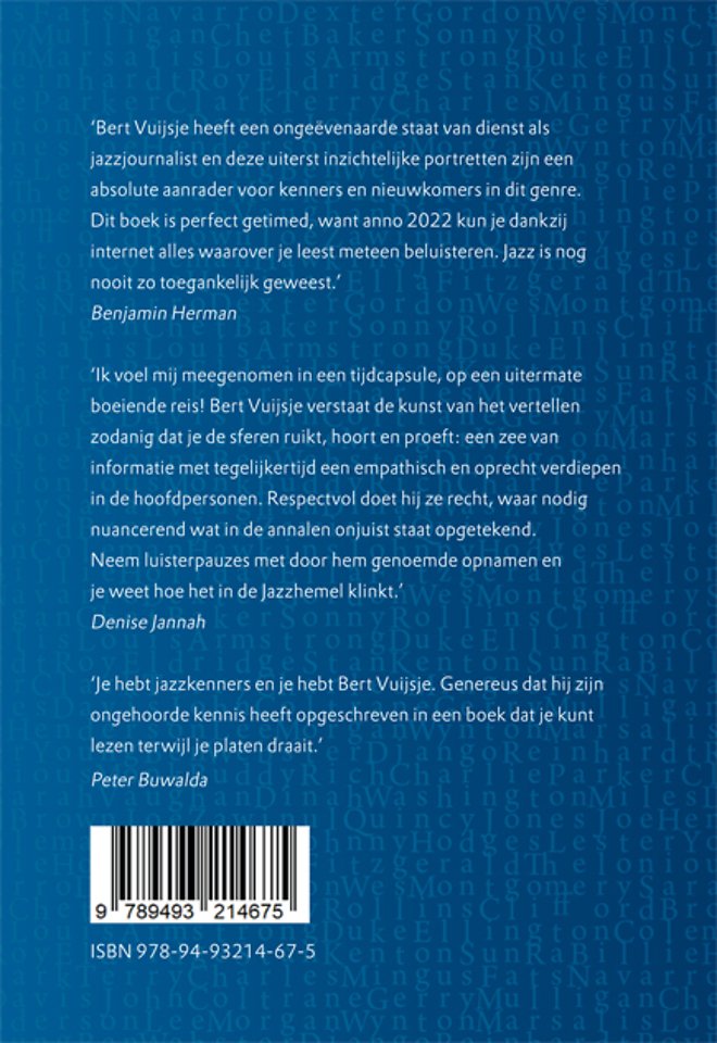 «Bert Vuijsje heeft een ongeëvenaarde staat van dienst als jazzjournalist en deze uiterst inzichtelijke portretten zijn een absolute aanrader voor kenners en nieuwkomers in dit genre. Dit boek is perfect getimed, want anno 2022 kun je dankzij internet alles waarover je leest meteen beluisteren. Jazz is nog nooit zo toegankelijk geweest.» – Benjamin Herman