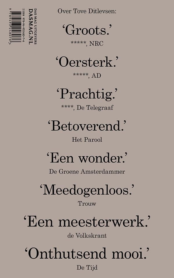 Tove Ditlevsen (1917-1976) was een literair buitenbeentje in haar tijd: ze was een huisvrouw uit de arbeidersklasse met vier gestrande huwelijken achter de rug en een sluimerende drugsverslaving, waar ze ook nog eens openhartig over schreef. Ze werd geliefd door generaties Deense vrouwen, neergesabeld door generaties Deense mannen, omschreef de Deense schrijver Olga Ravn onlangs bij BBC Radio 4. Hoe anders is dat nu: een nieuwe generatie van veelal jonge lezers (her)ontdekt wereldwijd het rauwe en springlevende oeuvre van Tove Ditlevsen - de trilogie is inmiddels al aan negenentwintig landen verkocht.