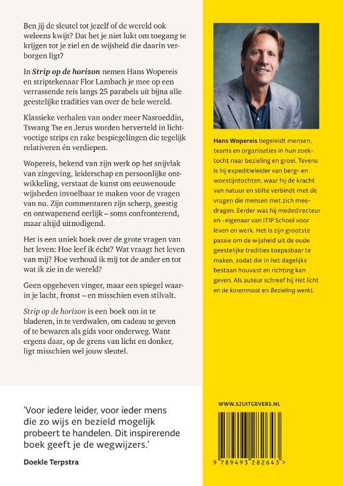 In Strip op de horizon nemen Hans Wopereis en striptekenaar Flor Lambach je mee op een verrassende reis langs 25 parabels uit bijna alle geestelijke tradities van over de hele wereld. Klassieke verhalen van onder meer Nasroeddin, Tswang Tse en Jezus worden herverteld in lichtvoetige strips en rake bespiegelingen die tegelijkertijd relativeren én verdiepen.