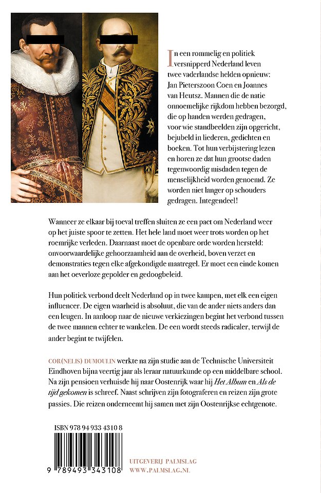 In een rommelig en politiek versnipperd Nederland leven twee vaderlandse helden opnieuw: Jan Pieterszoon Coen en Joannes van Heutsz. Mannen die de natie onnoemelijke rijkdom hebben bezorgd, die op handen werden gedragen, voor wie standbeelden zijn opgericht, bejubeld in liederen, gedichten en boeken. Tot hun verbijstering lezen en horen ze dat hun grootse daden tegenwoordig misdaden tegen de menselijkheid worden genoemd. Ze worden niet langer op schouders gedragen. Integendeel!