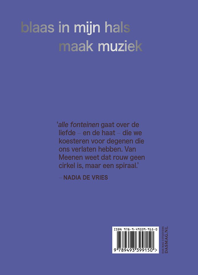 "alle fonteinen gaat over de liefde - en de haat - die we koesteren voor degenen die ons verlaten hebben. Van Meenen weet dat rouw geen cirkel is, maar een spiraal." - Nadia de Vries