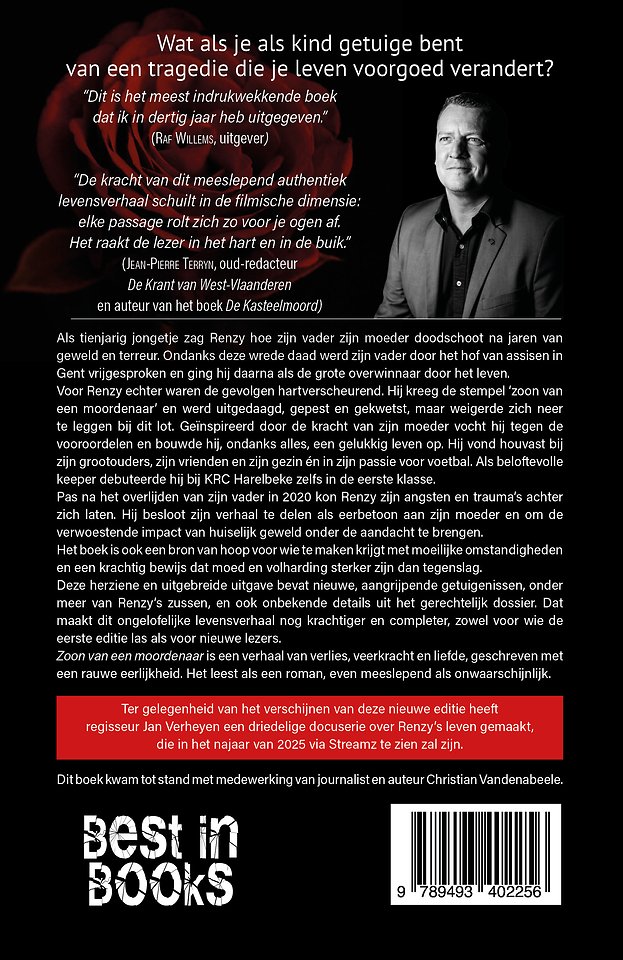 Voor Renzy echter waren de gevolgen hartverscheurend. Hij kreeg de stempel ‘zoon van een moordenaar’ en werd uitgedaagd, gepest en gekwetst, maar weigerde zich neer te leggen bij dit lot. Geïnspireerd door de kracht van zijn moeder vocht hij tegen de vooroordelen en bouwde hij, ondanks alles, een gelukkig leven op. Hij vond houvast bij zijn grootouders, zijn vrienden en zijn gezin én in zijn passie voor voetbal. Als beloftevolle keeper debuteerde hij bij KRC Harelbeke zelfs in de eerste klasse.