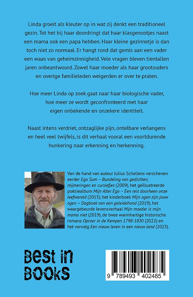 Linda groeit als kleuter op in wat zij denkt een traditioneel gezin. Tot het bij haar doordringt dat haar klasgenootjes naast een mama ook een papa hebben. Haar kleine gezinnetje is dan toch niet zo normaal. Er hangt rond dat gemis aan een vader een waas van geheimzinnigheid. Vele vragen bleven tientallen jaren onbeantwoord. Zowel haar moeder als haar grootouders en overige familieleden weigerden er over te praten.