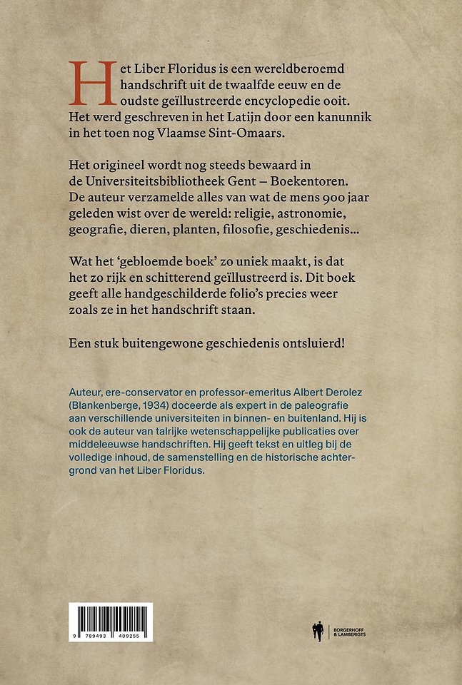 Dit boek geeft alle handgeschilderde folio’s precies weer zoals ze in het handschrift staan. Auteur Albert Derolez geeft tekst en uitleg bij de volledige inhoud, de samenstelling en de historische achtergrond van het Liber Floridus. Een stuk buitengewone geschiedenis ontsluierd!
