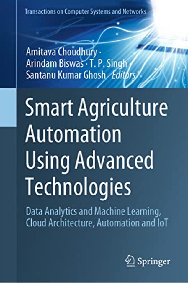 This book addresses the challenges for developing and emerging trends in Internet-of-Things (IoT) for smart agriculture platforms. It also describes data analytics & machine learning, cloud architecture, automation & robotics and aims to overcome existing barriers for smart agriculture with commercial viability. It discusses IoT-based monitoring systems for analyzing the crop environment, and methods for improving the efficiency of decision-making based on the analysis of harvest statistics. The book explores a range of applications including intelligent field monitoring, intelligent data processing and sensor technologies, predictive analysis systems, crop monitoring, and weather data-enabled analysis in IoT agro-systems. This volume will be helpful for engineering and technology experts and researchers, as well as for policy-makers.