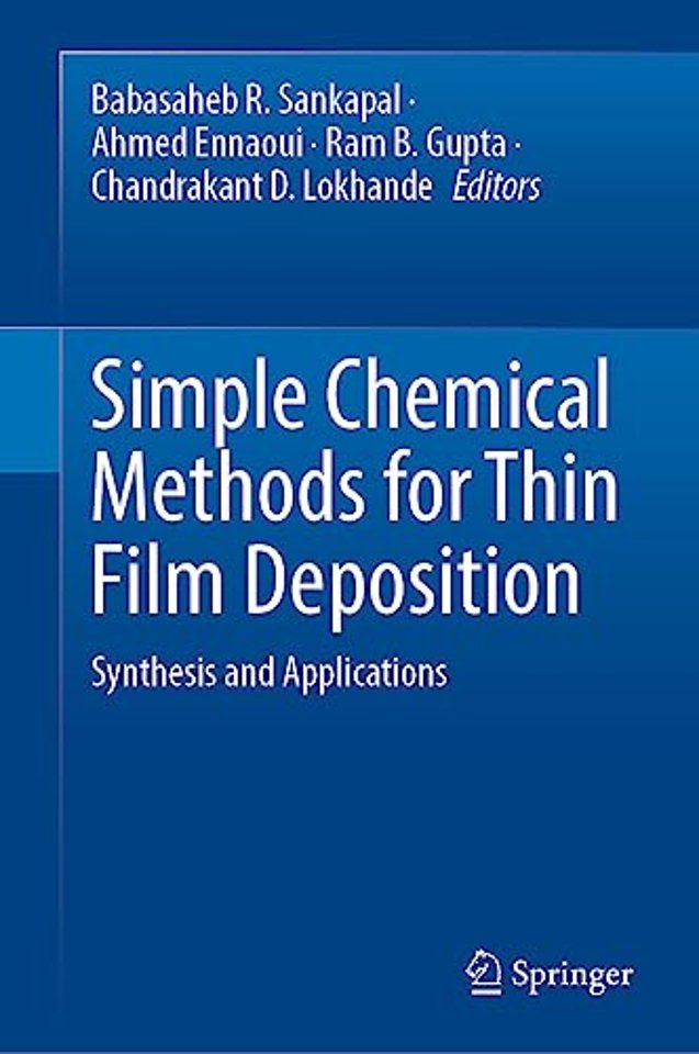 <p>Chapter 1: Chemical Bath Deposition: Thin Films with Assorted Morphologies.-&nbsp;&nbsp;Chapter 2: Well-Controlled Nanostructured Growth: Successive Ionic Layer Adsorption and Reaction.-&nbsp;Chapter 3:&nbsp;Ion-Exchange Method: Nanostructured Thin Films.- Chapter 4:&nbsp;Electroless Assisted Nanostructured Morphologies.- Chapter 5:&nbsp;Electrochemical Deposition Towards Thin Films.- Chapter 6:&nbsp;Nanostructured Thin Films by Hydrothermal Method.- Chapter 7:&nbsp;Spray Pyrolysis: Thin Film Coating.- Chapter 8:&nbsp;Spin Coating: Easy Technique for Thin Films.- Chapter 9:&nbsp;Dip Coating: Simple Way of Coating Thin Films.- Chapter 10:&nbsp;Screen Printing: An Ease Thin Film Technique.- Chapter 11:&nbsp;Doctor Blade: A Promising Technique for Thin Film Coating.- Chapter 12:&nbsp;Sol-Gel Derived Thin Films.</p>