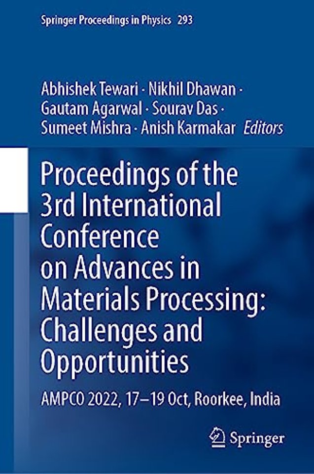 This book presents peer reviewed articles from the 3rd International Conference on Advances in Materials Processing: Challenges and Opportunities (AMPCO 2022), held at IIT Roorkee, India. It highlights recent progress made in the fields of materials processing, advanced steel technology and materials for sustainability. The conference is also special as it is being organized on the occasion of 60 years of the department of metallurgical and materials engineering as well as 175 years of IIT Roorkee.