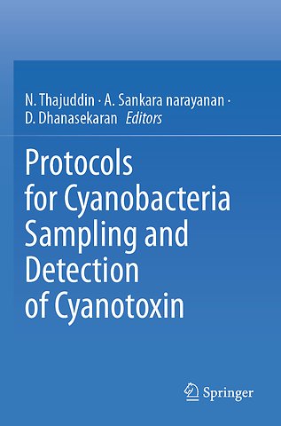 This protocol book provides detailed procedures for the isolation of cyanobacteria, extraction, quantification, and detection of cyanotoxins. It illustrates the sampling and processing of toxin-producing cyanobacteria in water and aquatic animal samples, detection of cyanotoxins from Anabaena, Anabaenopsis, Cylindrospermopsis, Microsystis, Microcystis, Nodularia, Nostoc, Schizotrix, Lyngbya, Raphidiopsis, Oscillatoria, Planktothrix in aquatic resources. It also covers toxicity analysis by various bioassay protocols, and in vitro and insilico analysis methods. The book also reviews the methods for cyanotoxin extraction, detection, and quantification by various tools including LC-MS/MS, HPLC, NMR, PCR, and HESI-MS/MS. A separate section is dedicated to the advanced methods in Cyanotoxin analysis including the Molecular Imprinting Method (MIM), Cellular signaling biosensor, Electrochemical sensor, Nanosensors, and screening of Polyketide synthase gene. The analysis of various toxin-producing genes like sxtA and mcy is also accounted for in this book.
