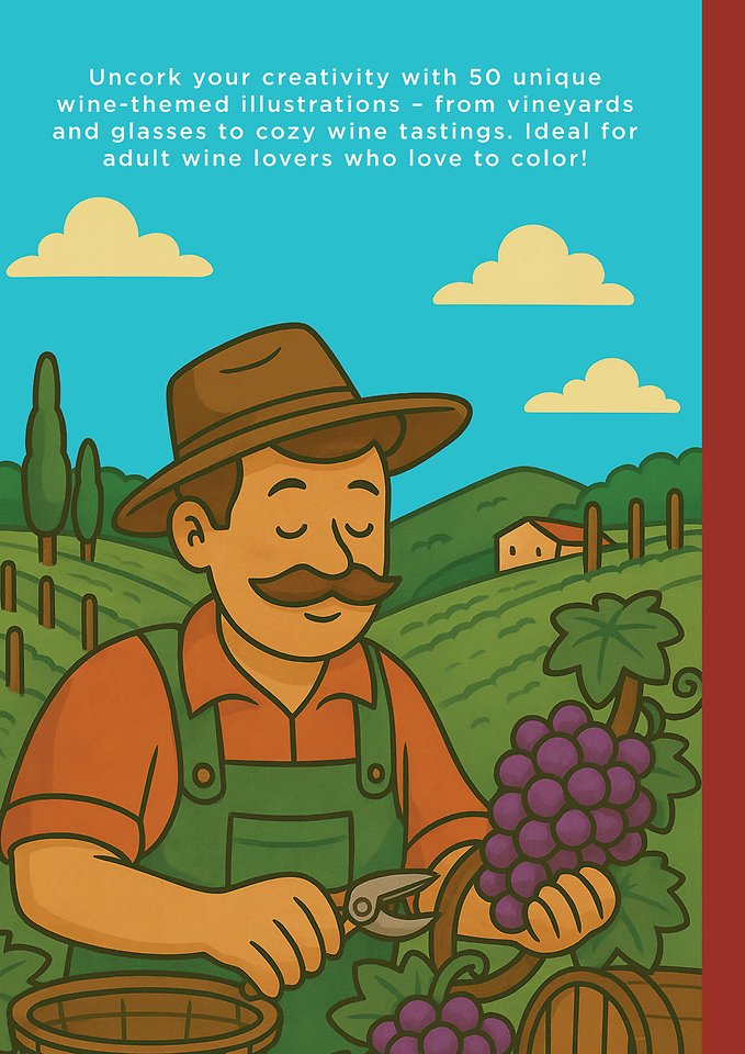 Uncork your creativity with 50 unique wine-themed illustrations - from vineyards and glasses to cozy wine tastings. Ideal for adult wine lovers who love to color!