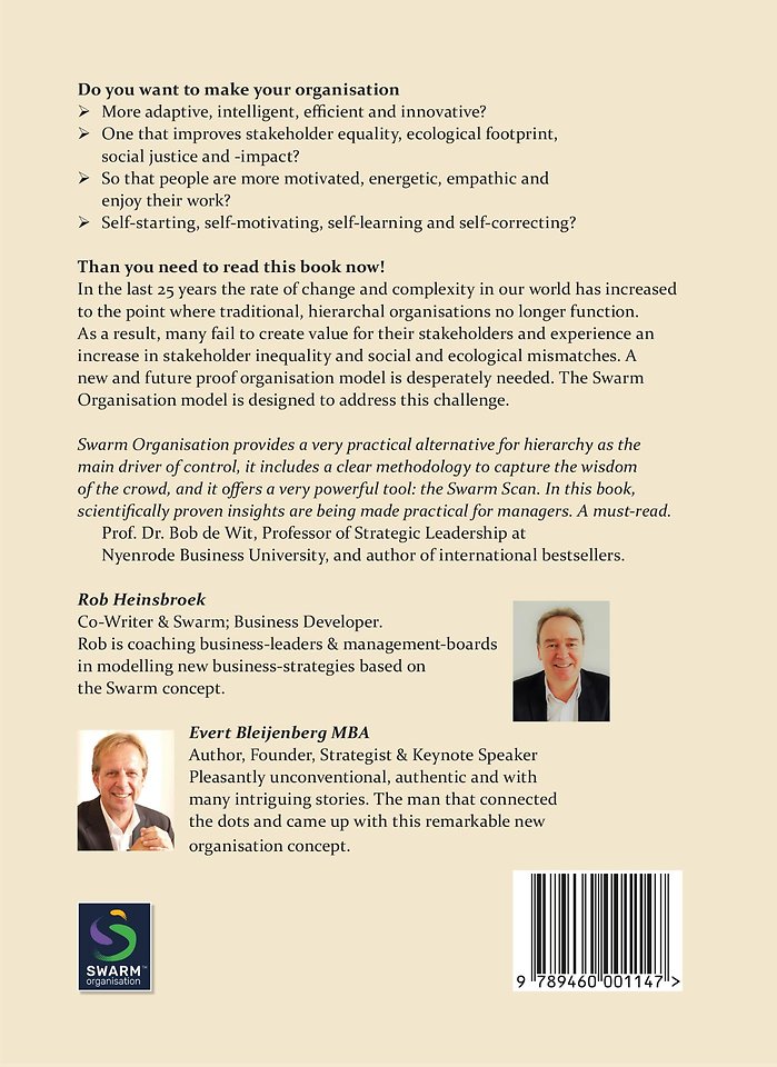 "Swarm Organisation provides a very practical alternative for hierarchy as the main driver of control, it includes a clear methodology to capture the wisdom of the crowd, and it off ers a very powerful tool: the Swarm Scan. In this book, scientifi cally proven insights are being made practical for managers. A must-read."